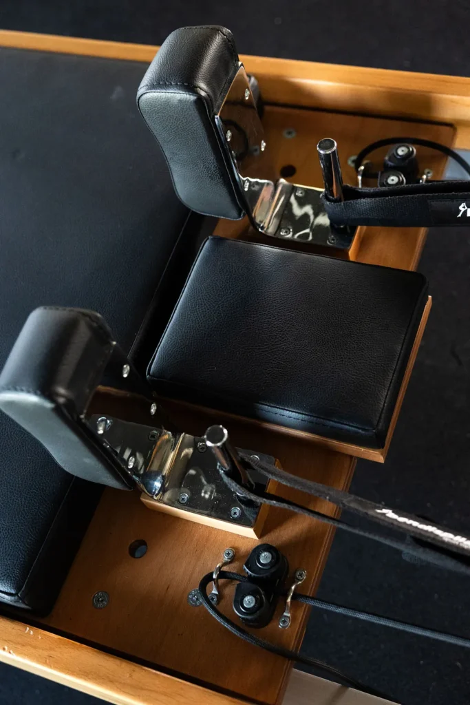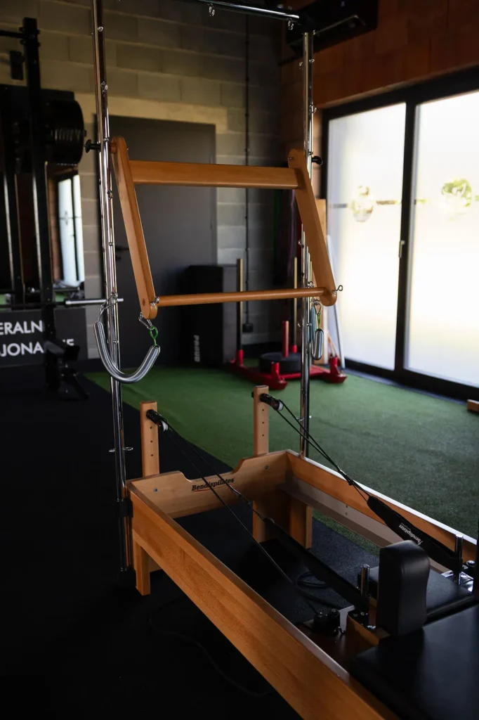 Reformer to profesjonalne łóżko do pilatesu wyposażone w ruchomą platformę, sprężyny oporowe, linki i poręcze. Dzięki niemu możesz ćwiczyć w różnych pozycjach – leżącej, siedzącej, klęczącej czy stojącej – co pozwala precyzyjnie angażować konkretne partie mięśni i bezpiecznie wzmacniać całe ciało.